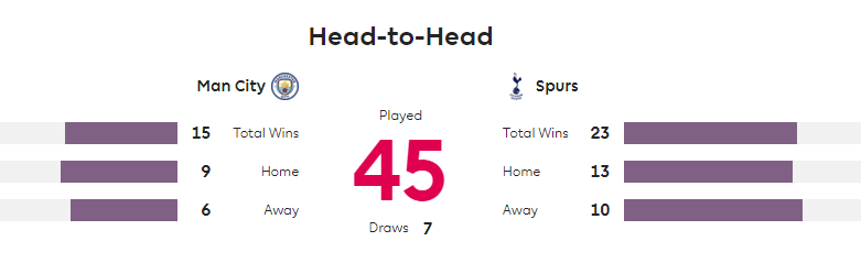 - Spurs are winless in 6 PL games against Man City (D2 L4) since a 2-0 win in October 2016 at White Hart Lane.