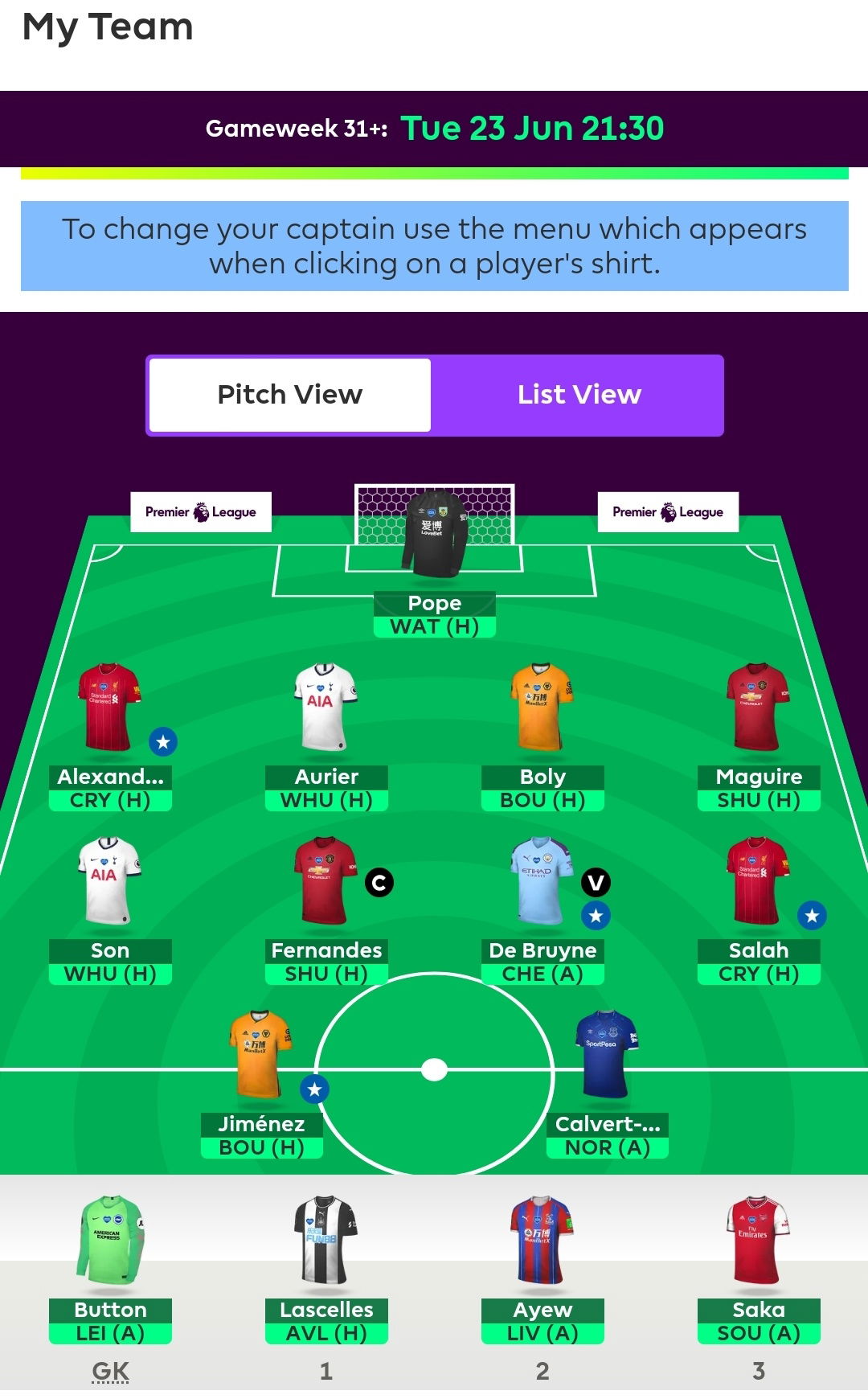 So without further ado, here is my wildcard team at the time of writing.
