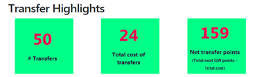 As you can see, I averaged +3.18 pts (per GW) as net gain from my transfers which I feel was decent business and good use of the transfers.