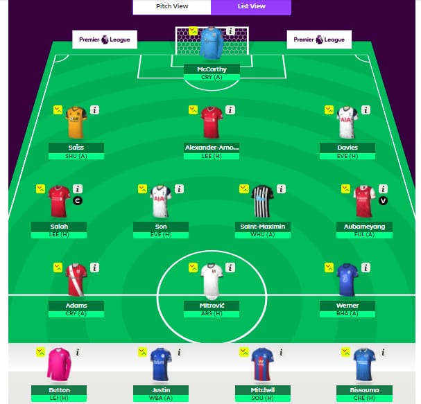 5. Wild Card: No plans on when to use at the moment, I treat it as my “get out of jail free card”. Only using it to bail if I get many decisions wrong or to jump on multiple fixtures/form switch.