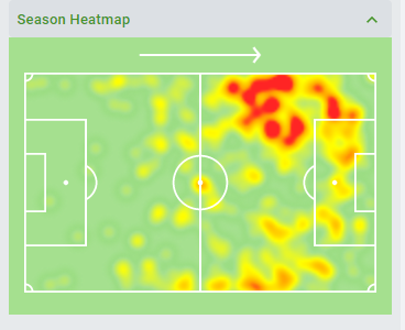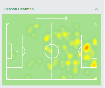 Jamie Vardy 2019/20 Season Heatmap (Sofascore)