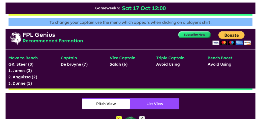 Of course any recommendation is up to us managers to follow or ignore. I for one ignored TC in GW1 for Salah as it was to early to play…well those 20 points would have been handy now.