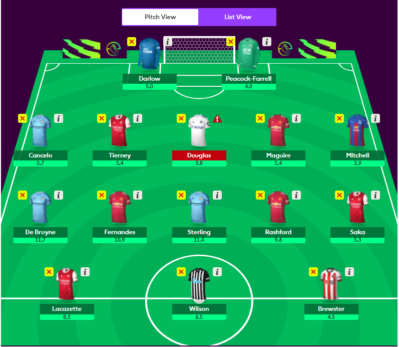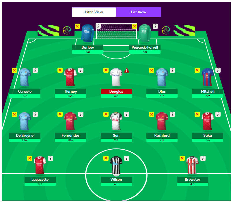 My current Free hit draft with double Man City defence and Son in a 3-5-2.