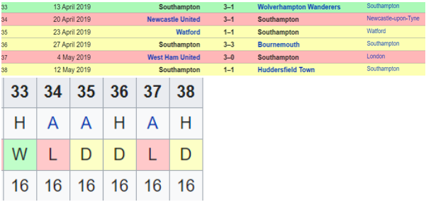 Southampton were struggling this season around bottom 3 for much of second half of the season and they seemed down and out with the loss against Chelsea though a hard fought one being their 4th consecutive loss. And yet, the same team knowing they had nothing, but relegation written all over them ended their next 6 matches with 2 Ws, 2Ds & 2Ls to end up safe on 17th position. Just to add, their 2 narrow losses were against City & Chelsea, they won their relegation fight match against Swansea and landed a tough blow on Bournemouth as well. To add, the draws against teams in top half of the table- Everton & Leicester. A typical fighting end to a season saved.