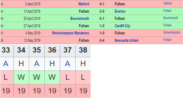 A typical season ender surprise came from Fulham this time as they followed 12 defeats in 14 matches with 3 wins in their last 6. 3 consecutive wins came against Everton, Bournemouth and a Cardiff heart breaker.