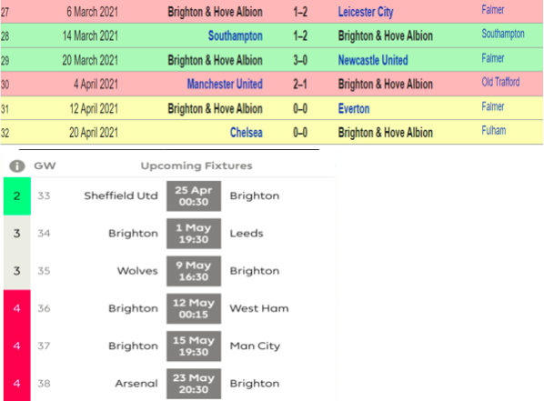 | Brighton & Hove Albion | Hit | Dunk, Trossard, Grob | Leeds,Wolves,Arsenal |
