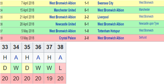 Entering GW 33 with 7 consecutive losses and being in relegation places since GW 18, WBA surely entered the last stretch with a target at their back. Enter a turn around that perhaps eptomizes the reaction principle at its zenith- 3 W, 2 D,1 L. WBA might have left it too late but they turned it around in style. Their wins were against teams like Man United & Newcastle Away and Spurs at Home. To add to this, they also had an entertaining 2-2 draw to Liverpool at home. I guess you know how the assessment ends for them.