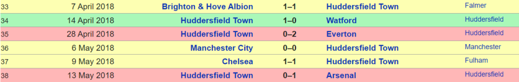 A first look at Huddersfield will make you feel they did not do well at all with 1 D, 1 W followed by 1 L, 2Ds and 1 L again. But when you look at the opponents, you get the bigger picture- the story of struggle or the reaction that we were talking about earlier. Their last 3 matches interestingly were against Man city ( Pep’s record breaking side), Chelsea & Arsenal. With 2 draws and 1 slim defeat, Huddersfield earned their place back in the league & lot of plaudits from their fans. I wonder how the FPL managers that season would have felt after targeting some of these fixtures.