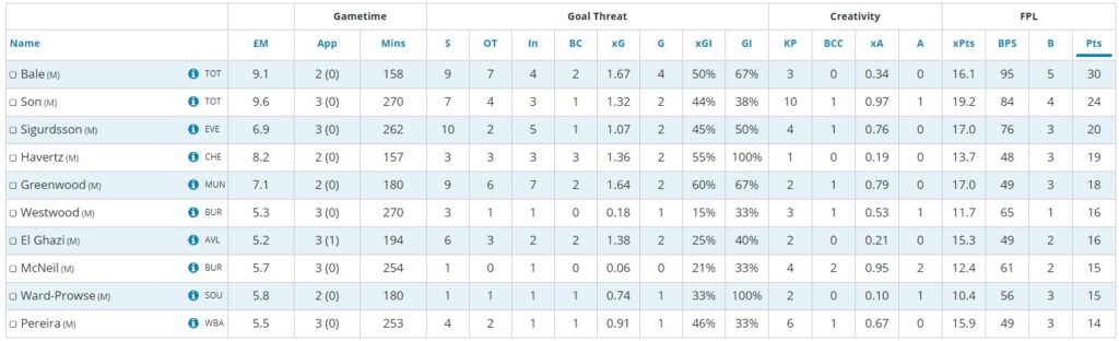 Looking at the last 3 weeks, is different though. Ward-Prowse is the 9th highest scoring MID between GW32-34 with 15points. An assist against Spurs and a goal against Leicester, both from set pieces (corner and penalty) contributed to the points.