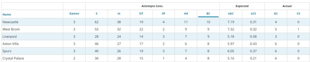 They ranked 10th for Shots Conceded (47), 9th Shots in Box Conceded (30), 8th for Shots on Target Conceded (18) and 11th for Big Chances Conceded (7).