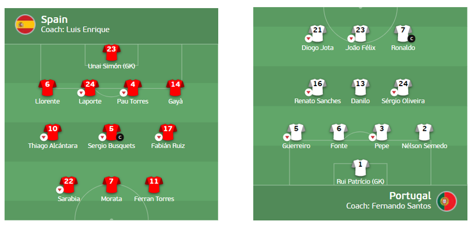 - Enrique may have praised Sarabia’s (6.5m) hard work in the training, I don’t see him making the cut-over D Olmo (7m). He did not have a great outing against Portugal either