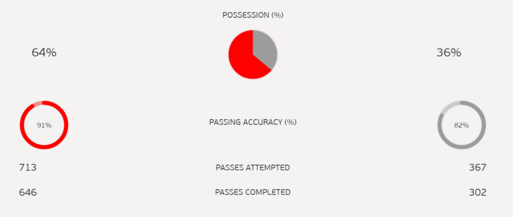 Being the most high-profile friendly game yet, I certainly did not predict the domination Spain had in the game. If you did not watch the game, you may find it hard to believe my words, but maybe these stats can help. No prize for guessing which one is Spain.