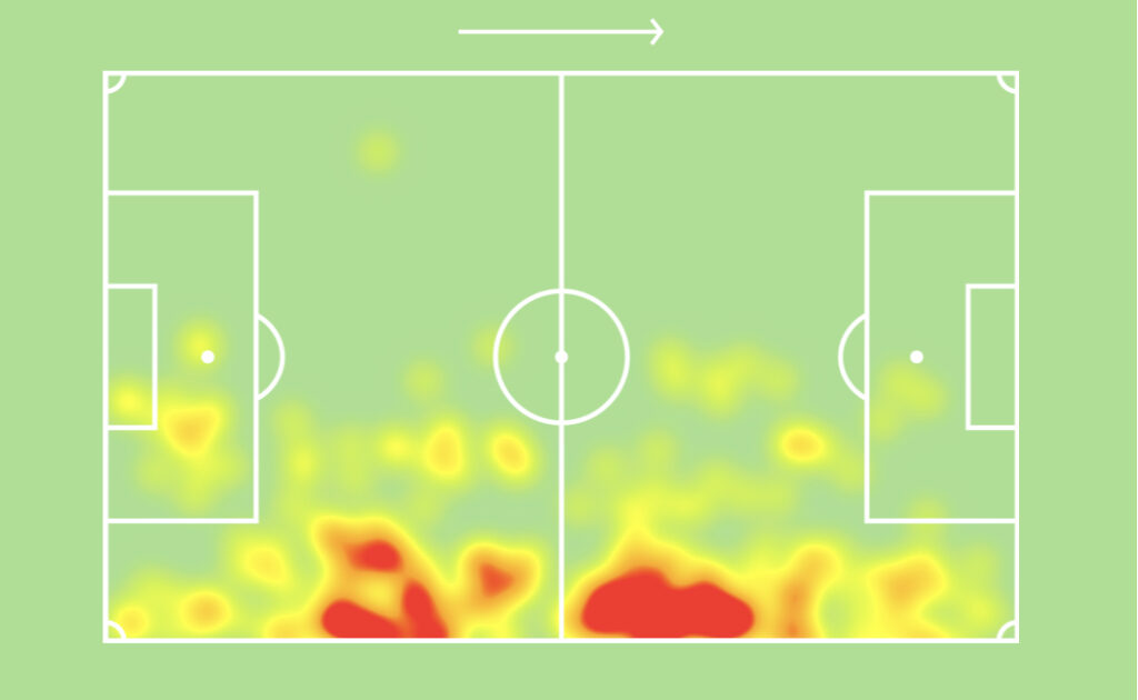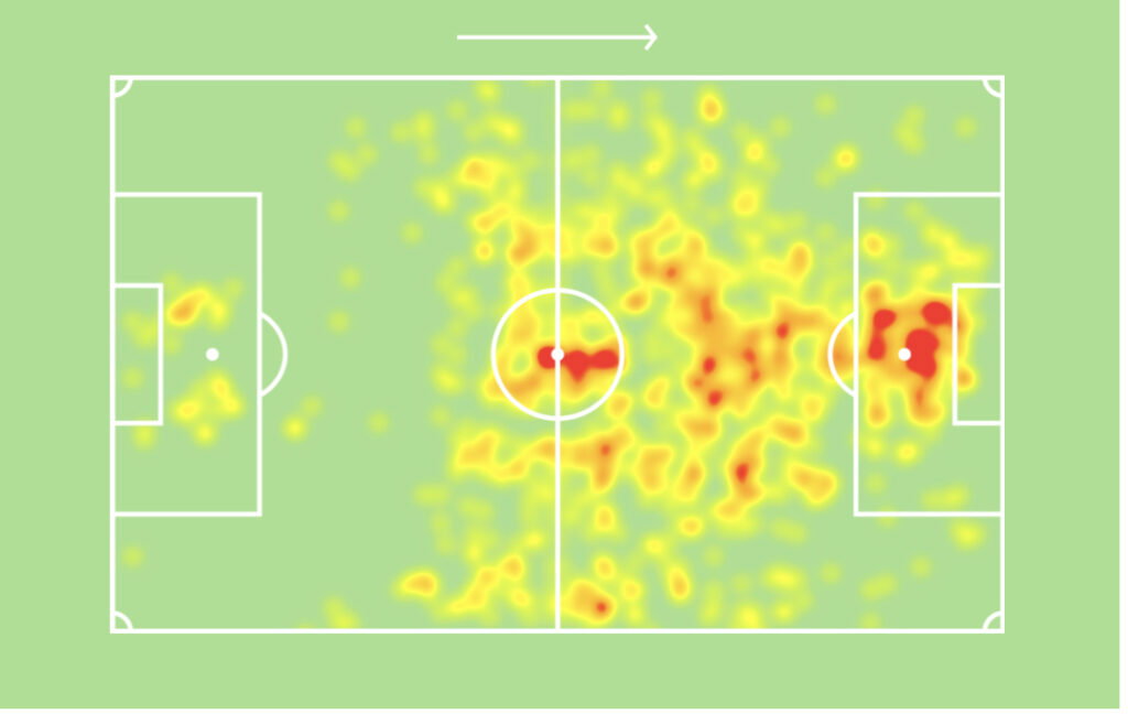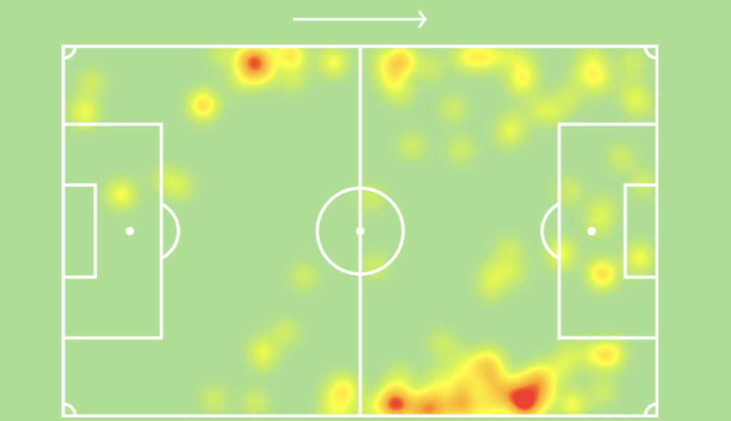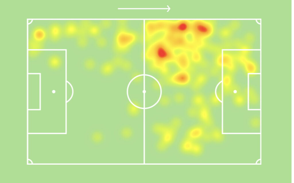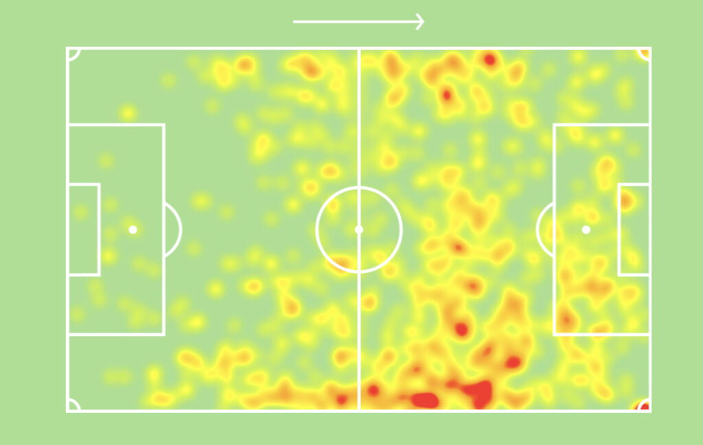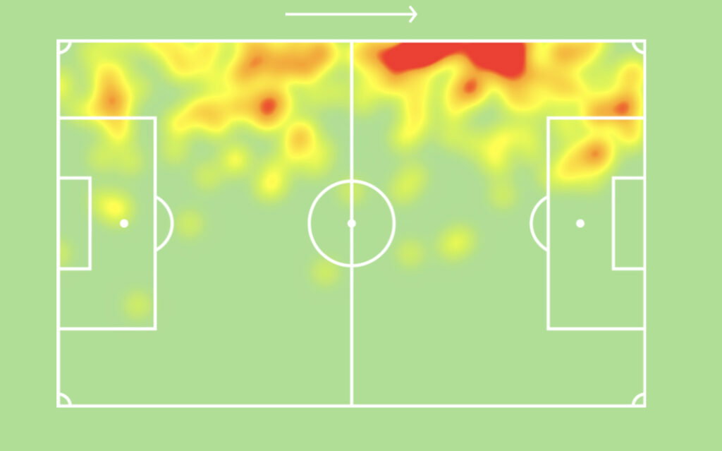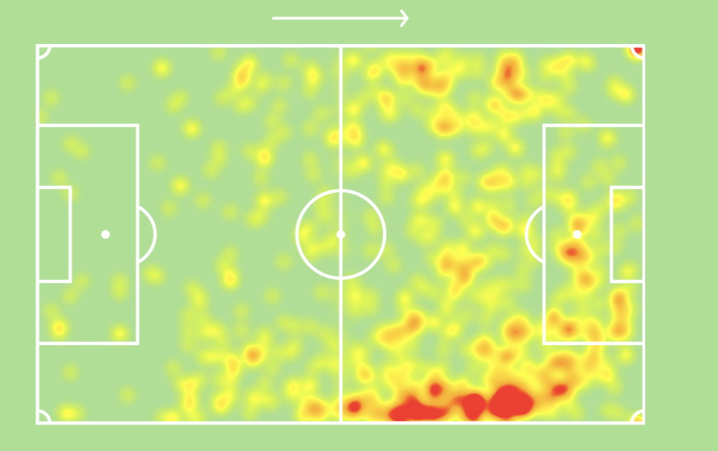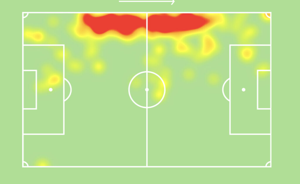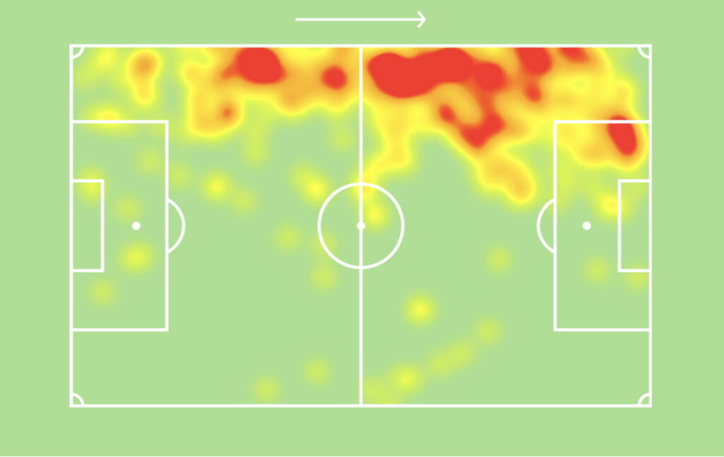 You can see below how attacking Spinazzola really is in the heat map. Making darting runs consistently down the wing he becomes a very dangerous asset for country.