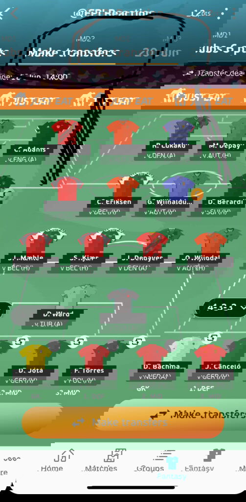 Note: Remember the deadline for your matchday 2 team is the 16th of June. This means that the day after match day 1 finishes match day 2 starts so you have less than 24 hours to get those teams locked in.