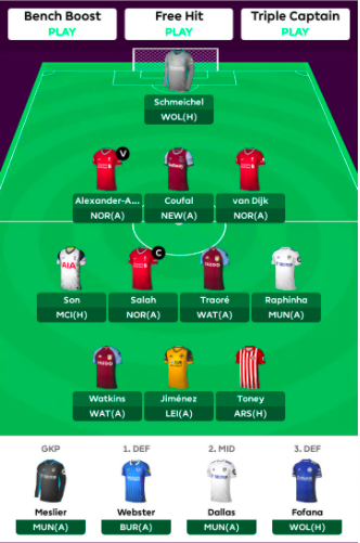 From your playing 11, you can choose your captain and vice-captains, selecting your captain for a specific match week is really very important as it doubles up that player’s point which he scored in that match week. The role of vice-captain comes in when the captain does not play a single minute in that match week now your vice-captain becomes the captain of your team and his points get doubled up.