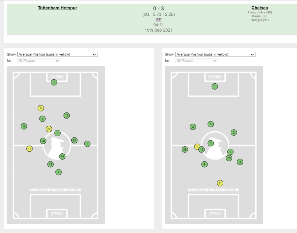 They pressed high and had Chelsea pinned back and struggling to create in a good first half but a combination of a tactical switch from Chelsea and potentially tired legs from Spurs caused the intensity of their press to drop in the second half as Chelsea grew into the game. Chelsea on the other hand had Kepa Arrizabalaga in goal for the injured Mendy, Azpilicueta played right wing-back despite Reece James’ return from suspension and Alonso kept his spot at left wing-back yet again. Thomas Tuchel reacted to Spurs pressing Chelsea back by switching them to a 3-5-2, adding an extra body in midfield to help in the build-up to escape the press – a change that allowed Chelsea to regain control and put on a professional second-half clinic.