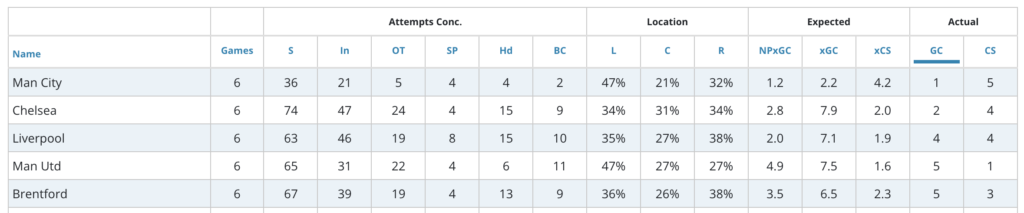 Chelsea play Southampton at home in GW7. The Saints have conceded 12 big chances, 18 headed attempts, and 48 shots in the box. While not the worst defence at the moment, they have yet to win a Premier League match this season.