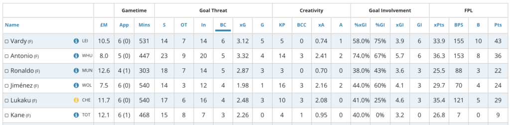 In fact, 15% of managers have already made the switch prior to the deadline. Vardy’s recent performances have gone under the radar due to the recent sensation over the premium strikers of Ronaldo and Lukaku, as well as xG monster Antonio. However, the Leicester striker has only blanked in 2 games since GW1, with 6 goals scored and 2 double digit hauls.