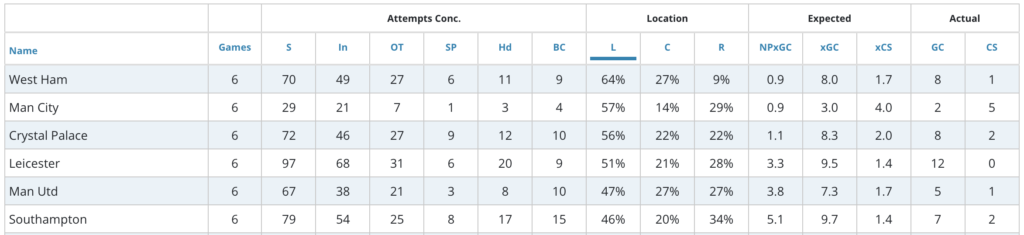 Everton play West Ham at home in GW8. The Hammers have conceded 8 goals and only kept 1 clean sheet so far. 64% of West Ham’s chances were conceded on their left side, which is the right wing typically patrolled by Townsend.