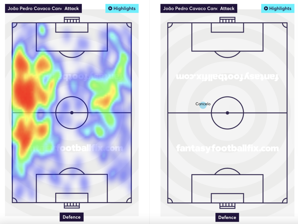Those who have watched Cancelo play know he is constantly involved in the attack, looking for key through balls to attackers. He often sinks into the midfield, as shown in the average position graphic below: