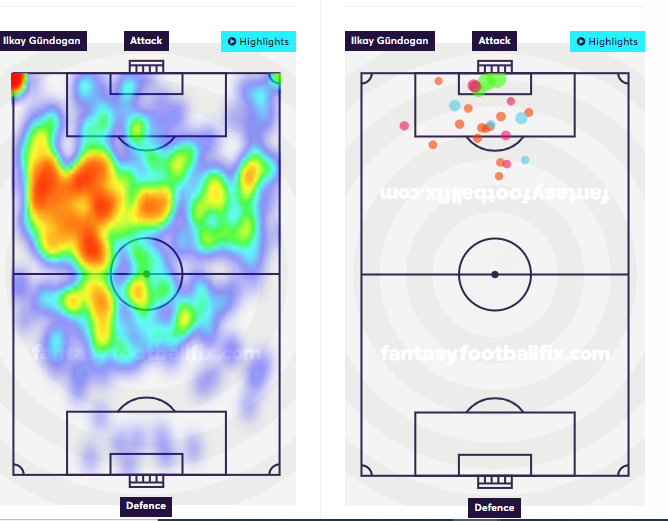 In FPL GW16 Pep’s men take on Wolves, a team which has conceded 44% of chances through the center. Only Brighton(48%) have a worse tally in the league. As we can see from the above graphic, that is largely where Gundogan operates.