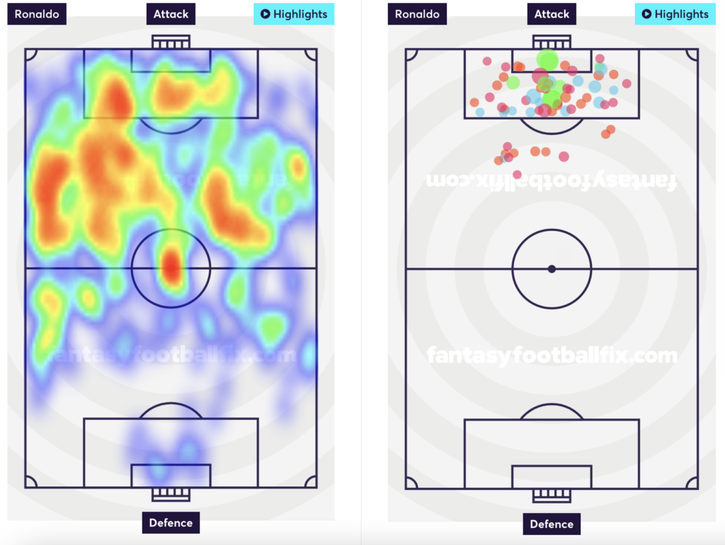 Among all forwards, Ronaldo is still 2nd best for xG and 3rd best for expected goal involvement. He is 2nd best for touches in the box (49) and shots in the box (22). With his double gameweek in GW25, he is a great captaincy shout for those who own him.