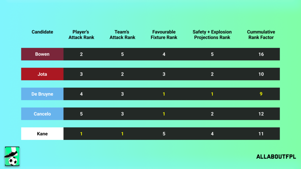 Conclusion – Final Rank from our FPL Gameweek 24 Captaincy metric analysis