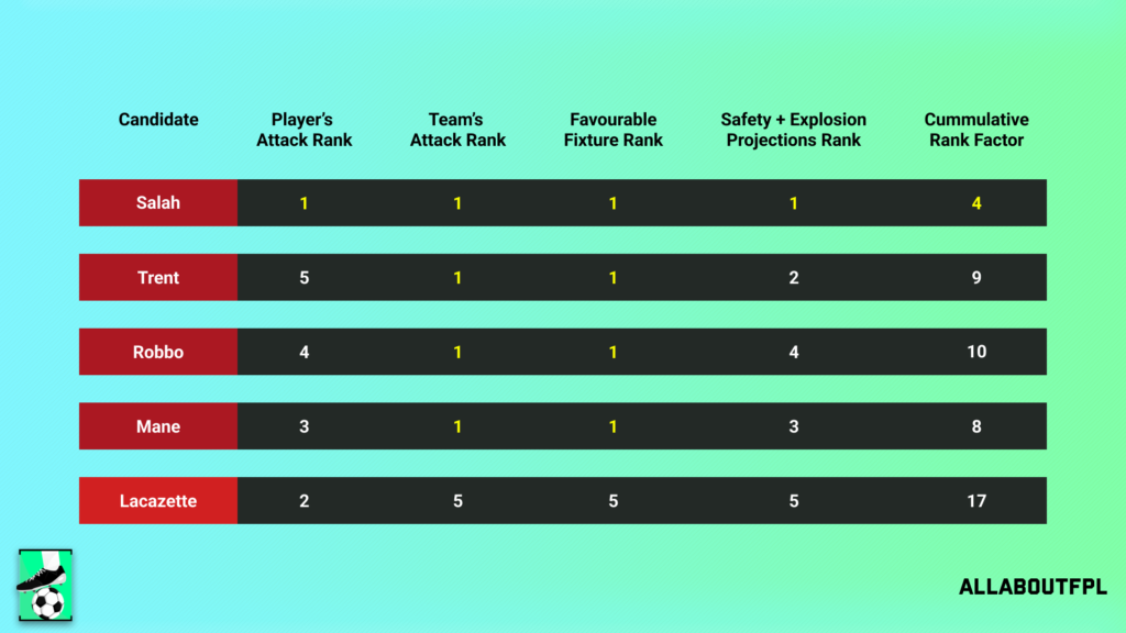 Conclusion – Final Rank from our FPL Gameweek 26 Captaincy metric analysis