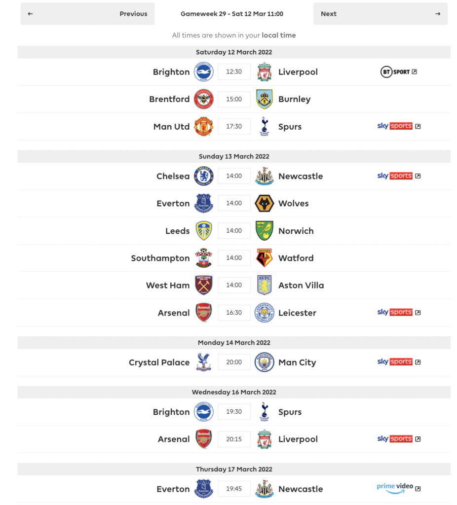 FPL DGW29 Fixtures