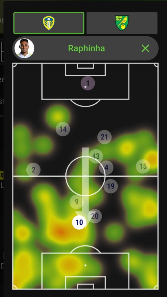Raphinha (6.5m, MID) was the furthest forward player for Leeds on average position and had a good penalty box presence. Yet again, it was a frustrating case of epic point-dodging from the Brazilian though he did come away at least with the last gasp assist. He had a day-high xGI of 1.57. He had 3 shots, 2 from inside the box and 1 big chance for an xG of 0.72 but hit the post twice while creating 4 chances including 2 big chances for an xA of 0.85.