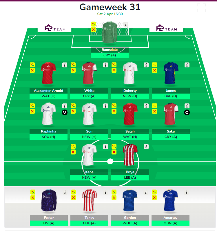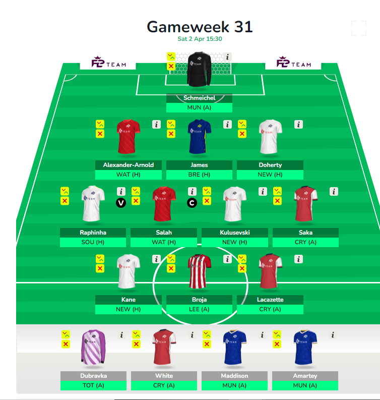 - Team well set up from GW31 onwards for the Double and Blank Gameweeks ahead.