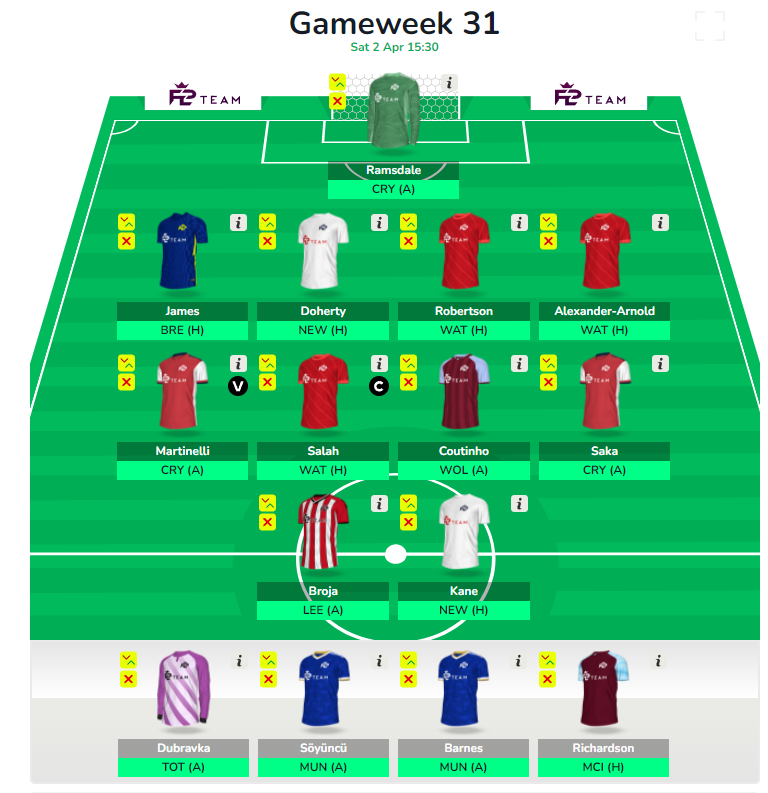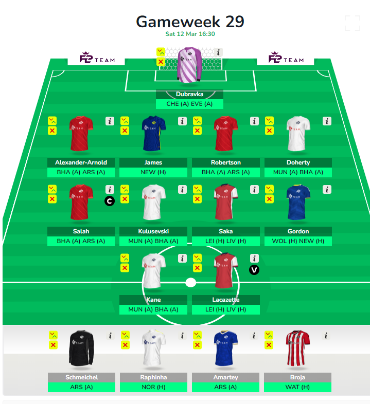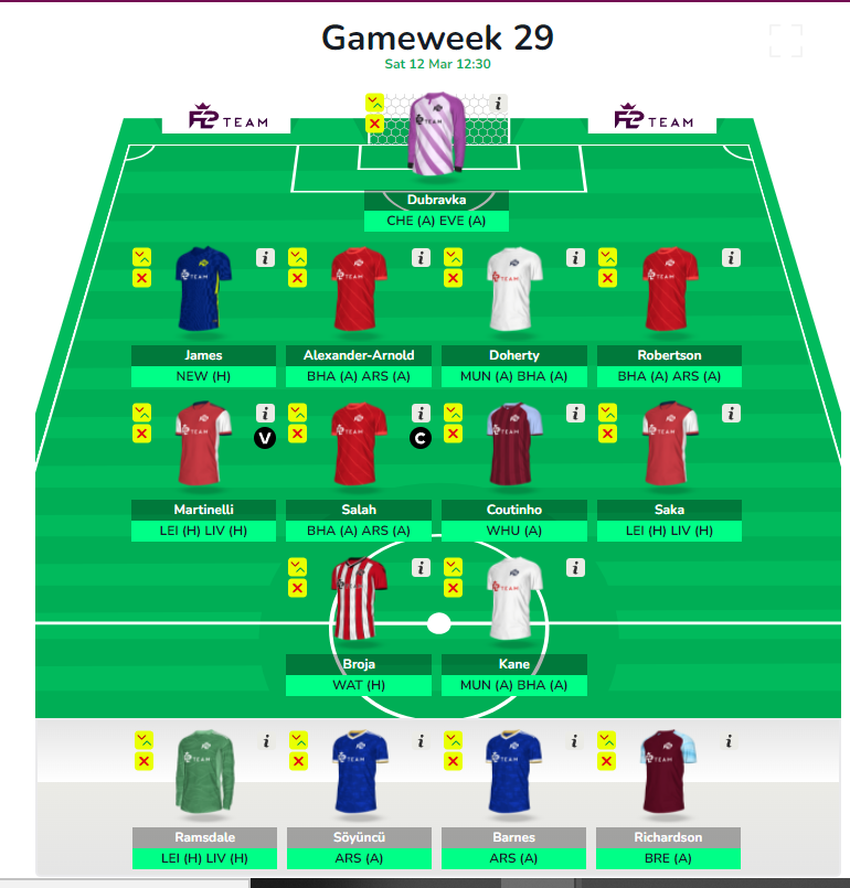- 8 Double Gameweek players, James, Coutinho, Broja for GW29.
