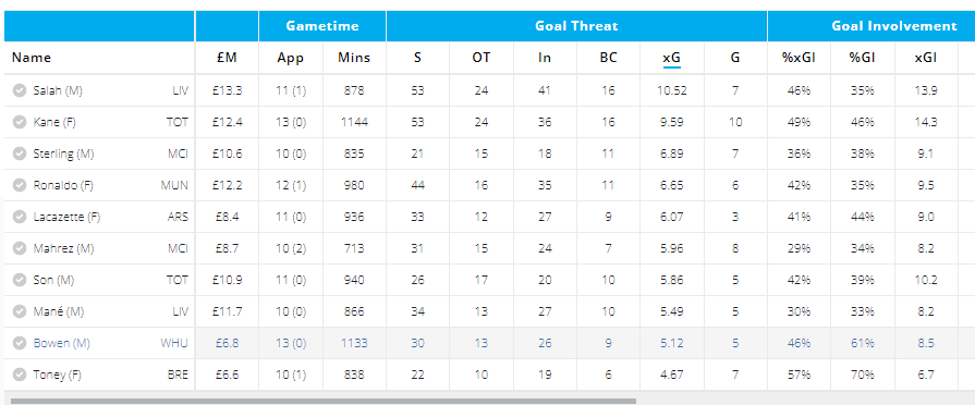 The above graphic shows data of players from Gameweek 16 onwards. As we can see, Lacazette has the 5th best xG in this period. He is also joint 7th best for big chances in that time. The Arsenal man has also fared well as far as the assists are concerned. He tops the charts for assists, bagging eight in all.