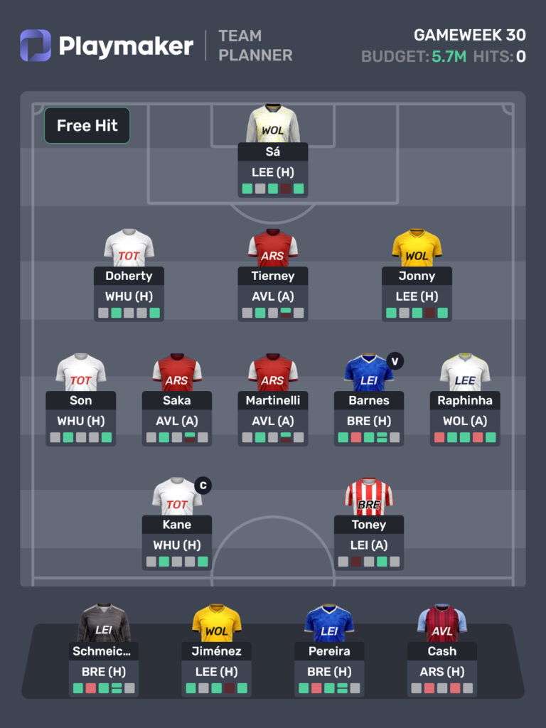 Author’s ideal freehit draft for FPL GW30