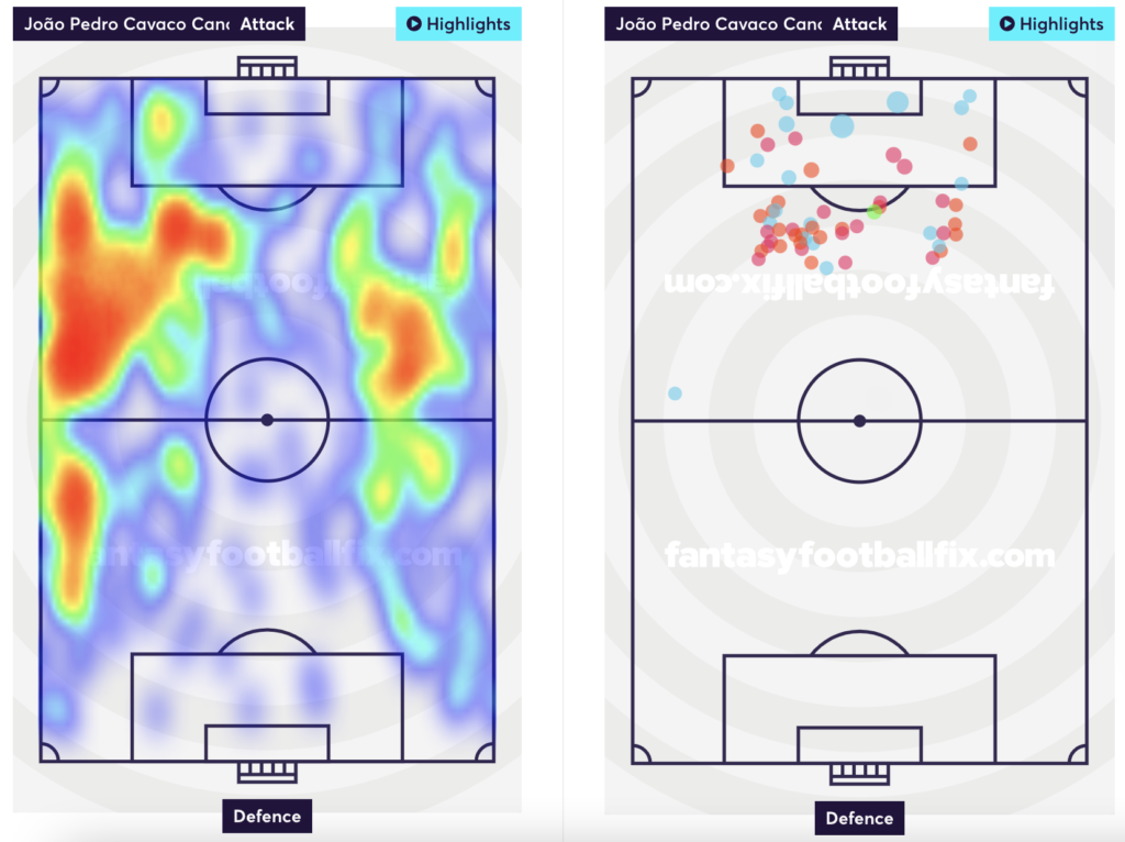 In the last 6 gameweeks, Cancelo’s stats are overshadowed by other assets who benefit from the boost of the double gameweeks. However, Cancelo still registers a decent amount of touches in the box, shots taken, and entries into the box. Among City defenders, he would be the standout pick, given his tendency to get involved with the attack.