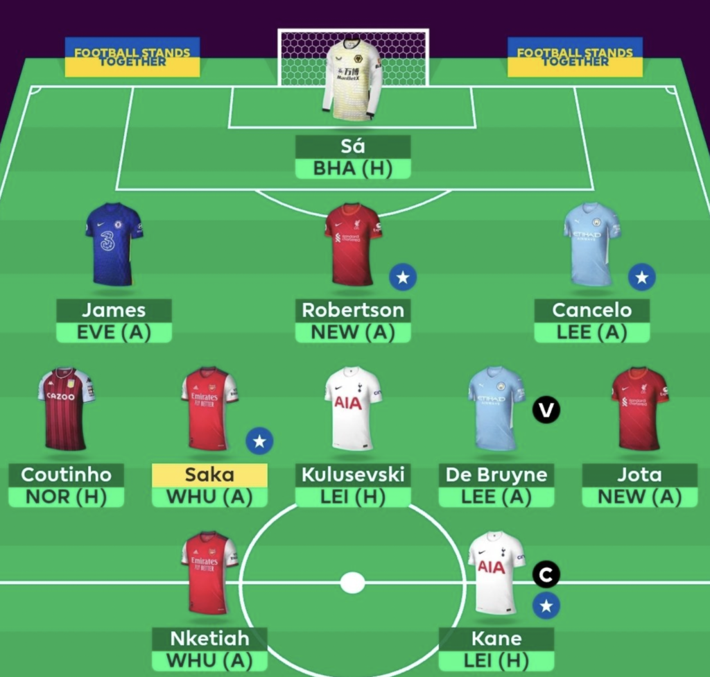 In order to accommodate KDB, we have gone with Jota over Salah as we feel Jota is guaranteed to start against the Magpies.
