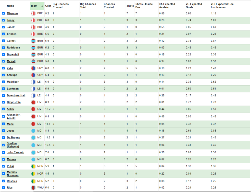 Teemu Pukki remains underrated and may well come into the picture if Norwich continue to show some fight with an upcoming Double Gameweek and good stats to boot in a season where forwards have underwhelmed. He had 7 shots against Burnley, 5 from inside the box including 1 big chance, created 3 chances including 1 big chance for a huge xGI of 1.36 on the day.