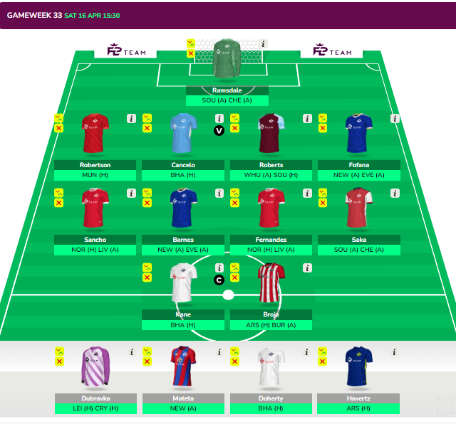 - Fernandes and Sancho can be removed after GW33 to accommodate KDB/Salah and Foden.
