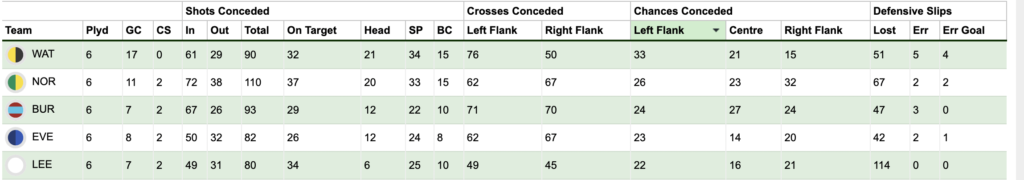 | Team | Big chances conceded Rank | Goals conceded Rank |