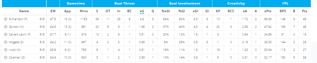 Gordon has been a standout performer ever since Frank Lampard took over. As we can see from the above stats, the midfielder has been getting chances as well as creating them. He is top for big chances created and xA and Key passes among his compatriots since FPL GW23. He is 20th for xA overall in the league in that time, which is more than decent for a player from a team that is desperately struggling for points.
