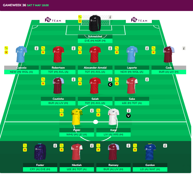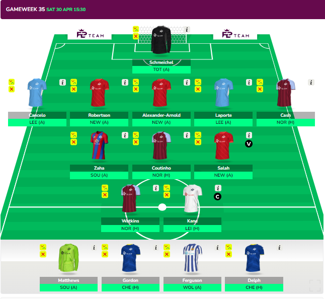 - Kane, Salah and Watkins could be KDB, Werner and Son/Foden/Mahrez if City double in GW36.