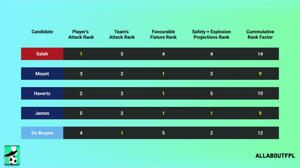 Conclusion – Final Rank from our FPL Gameweek 34 Captaincy metric analysis