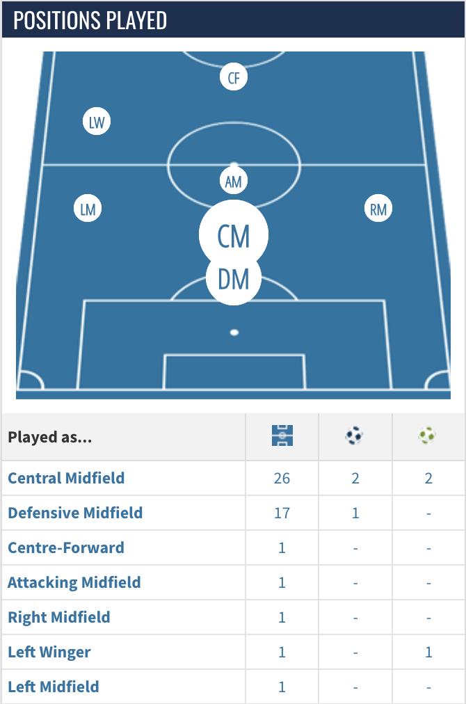 His positions during the season ~ 11 games as a second striker(4 goals, 9 assists), 9 games as an attacking midfielder(1 goal, 3 assists), 4 games as left mid(1 goal and 1 assist), and one game as a central midfielder with an assist. His versatility would be really useful for Arsenal and he could be a good FPL budget mid-option during the season.