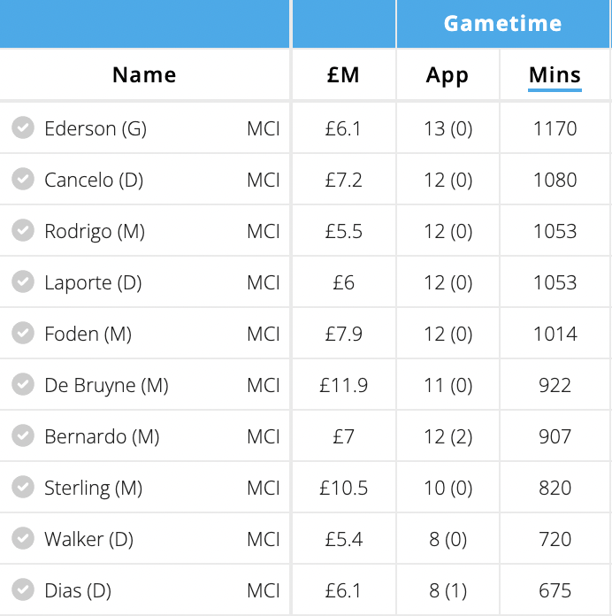 Another extraordinary stat to look at is the fact that he has started 12 out of the last 13 Premier League games, completing 90 minutes in 8 of them. As we can see, he has played more minutes than any other attacker in that time. We are giving so much emphasis to minutes we know that given the double they have, their attackers will invariably give returns, but the problem is whether or they will play both games. The aforementioned stats show that Foden has a very high chance of starting both games.