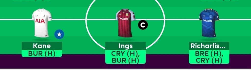 Danny Ings, Kane, and Richarlison are our three forwards this week.