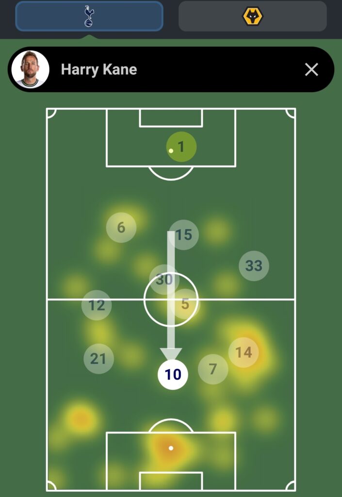Kane is on penalties, has a decent run of fixtures starting with Nottingham Forest this gameweek and might emerge as a reliable captaincy option in a schedule which could see reduced starts for the likes of Haaland and potentially even Son and De Bruyne. He also looked sharp against Wolves and was taking up positions in the box often as seen by his heat map below, compared to times where he’s often played deep and looked to set Son off. This may be an intentional change or due to Son still getting up to speed but certainly works in Kane’s favour at the moment.