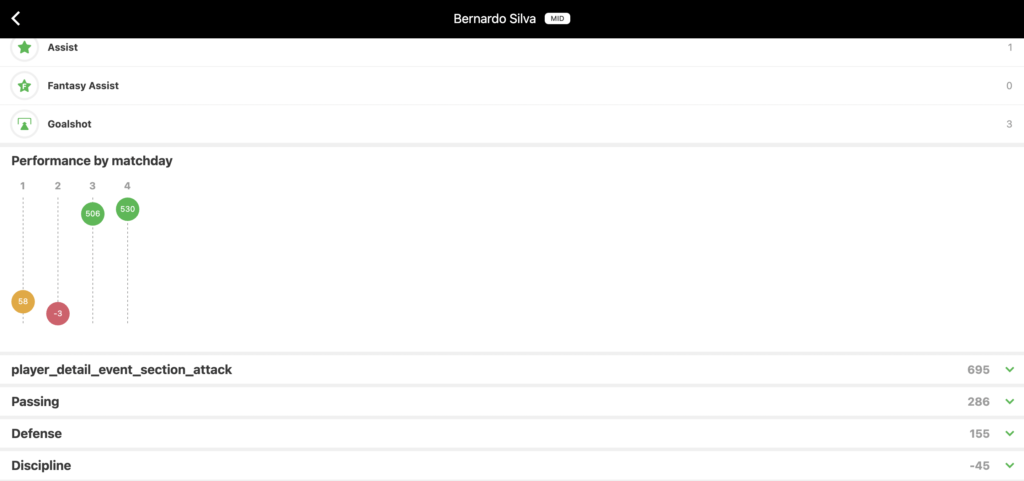 Bernardo Silva put on a brilliant performance scoring a whopping 530 points and it’s two consecutive matchdays in SPITCH where B Silva has scored more than 500 points. Rodri is also a great must-own option with a weekly average of 401 points.