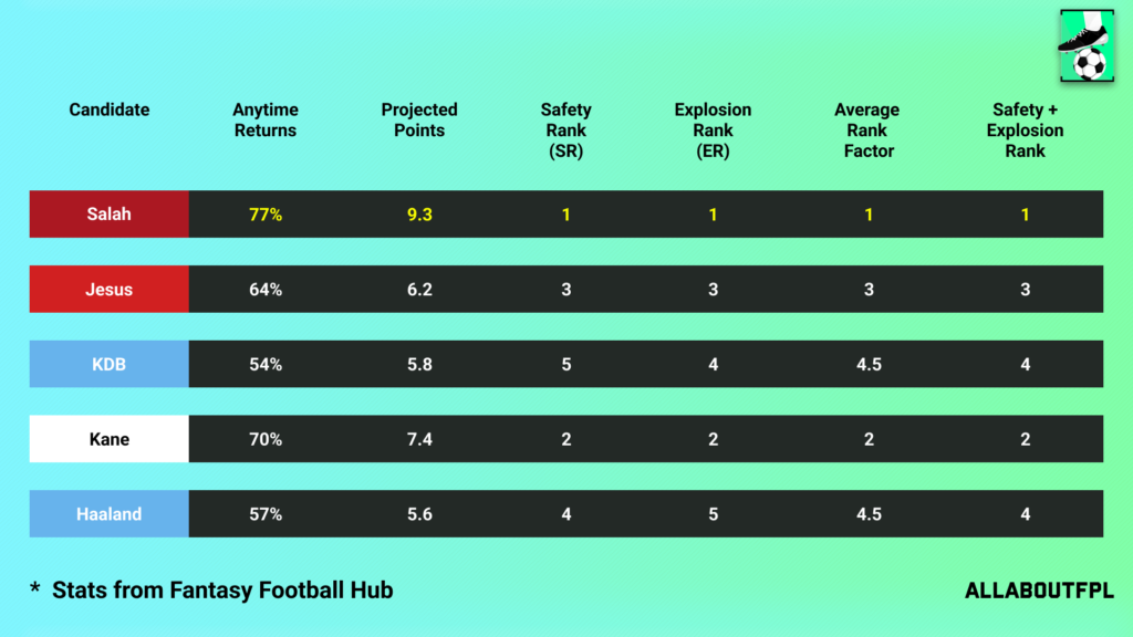 Conclusion – Final Rank from our FPL Gameweek 4 Captaincy metric analysis