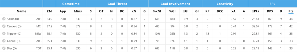 Cancelo ranks second for most points amongst defenders with only Saliba outscoring him so far.