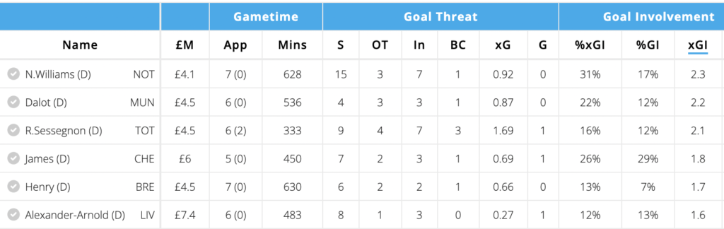 - ICT Index= 36.8 (5th for Defenders, 42nd Overall)